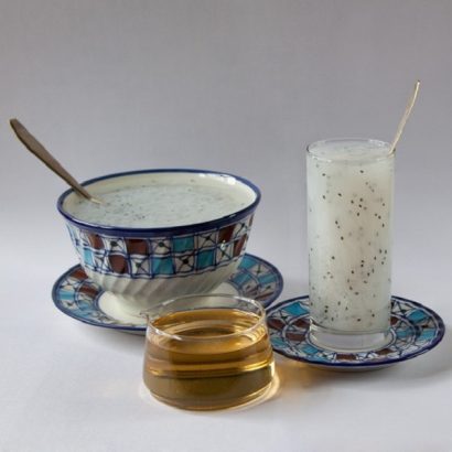 ترکیبات فالوده | نشاسته ، آب ، گلاب و تخم شربتی |